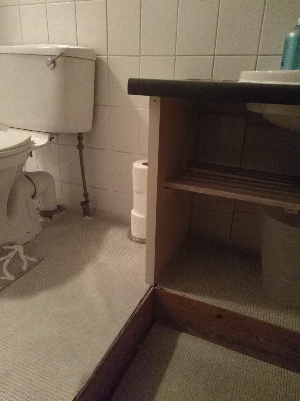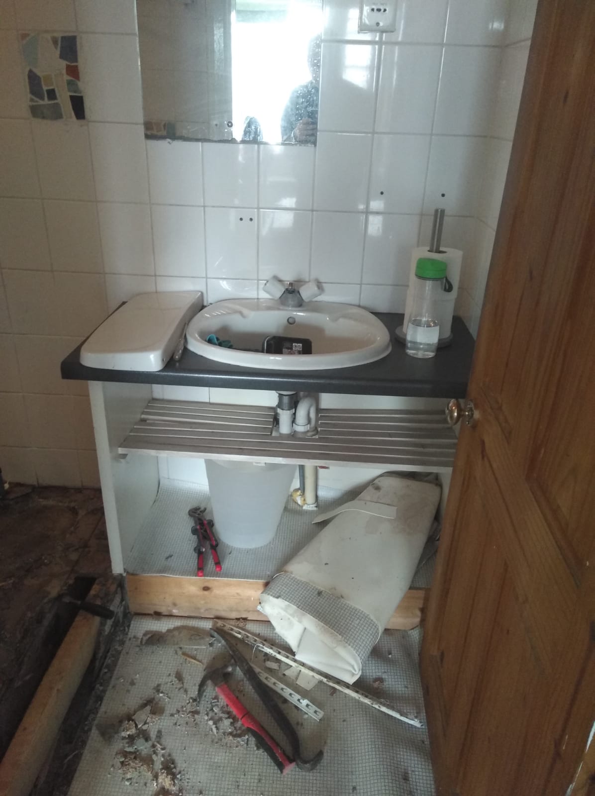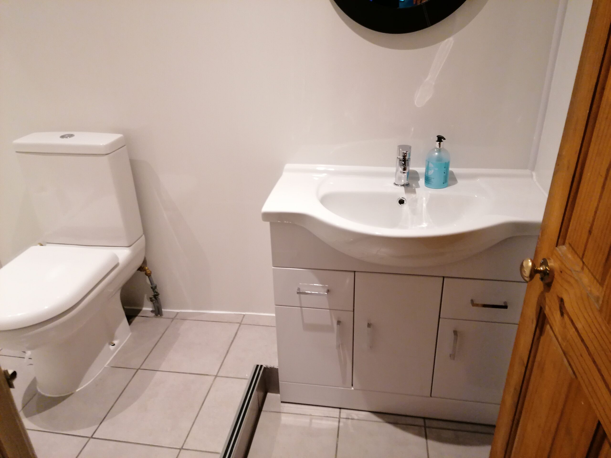 New tiles were added, painting job was done and the loft access on the ceiling was also repaired, painted and installed with safer and easier to use locks. The old mirror was swapped with a new one giving a touch of contrast in colour and shape and adding more style.